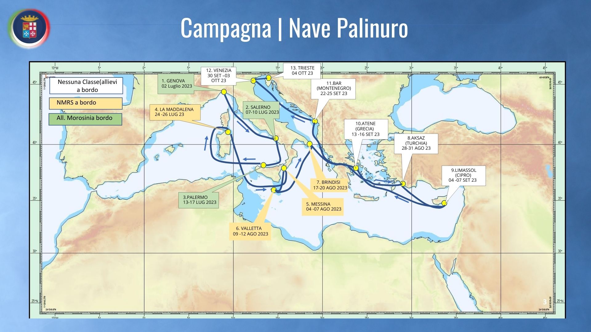 La Nave Palinuro ha iniziato il suo viaggio a luglio 2023 dal Porto di Genova e facendo tappa in 13 porti del Mediterraneo. Questo viaggio ha previsto una fase di pre-campagna, per la formazione degli equipaggi, iniziata il 24 maggio dal Porto di La Spezia, con 6 soste nei principali porti italiani, tra cui Napoli e Milazzo con eventi Marevivo. La mostra "Only One" è stata visitata in tutti i porti coinvolti.