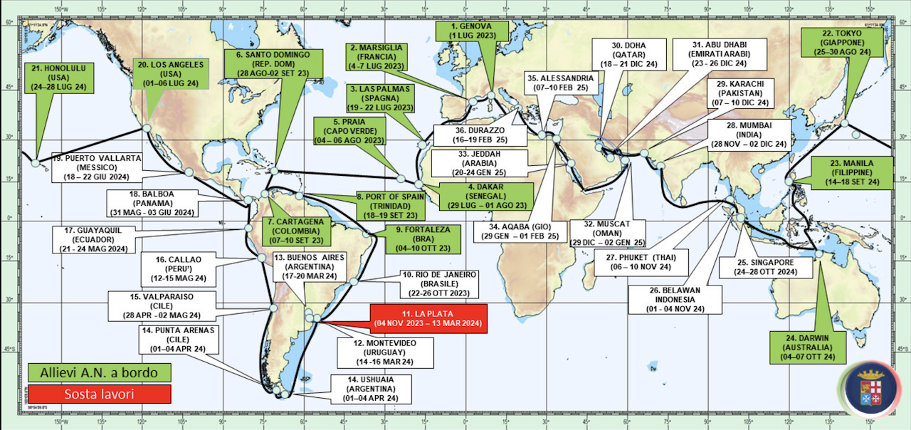 Lo straordinario viaggio della Nave Vespucci, partita da Genova, durerà 20 mesi facendo tappa in più di 30 porti in tutti i continenti. La mostra Only One sarà sempre visitabile.