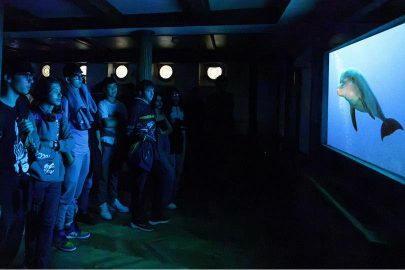 La sala immersiva “Dal grande al piccolo” offre un'esperienza audiovisiva coinvolgente dedicata alla scoperta del mondo marino, attraverso due proiezioni audio-video.