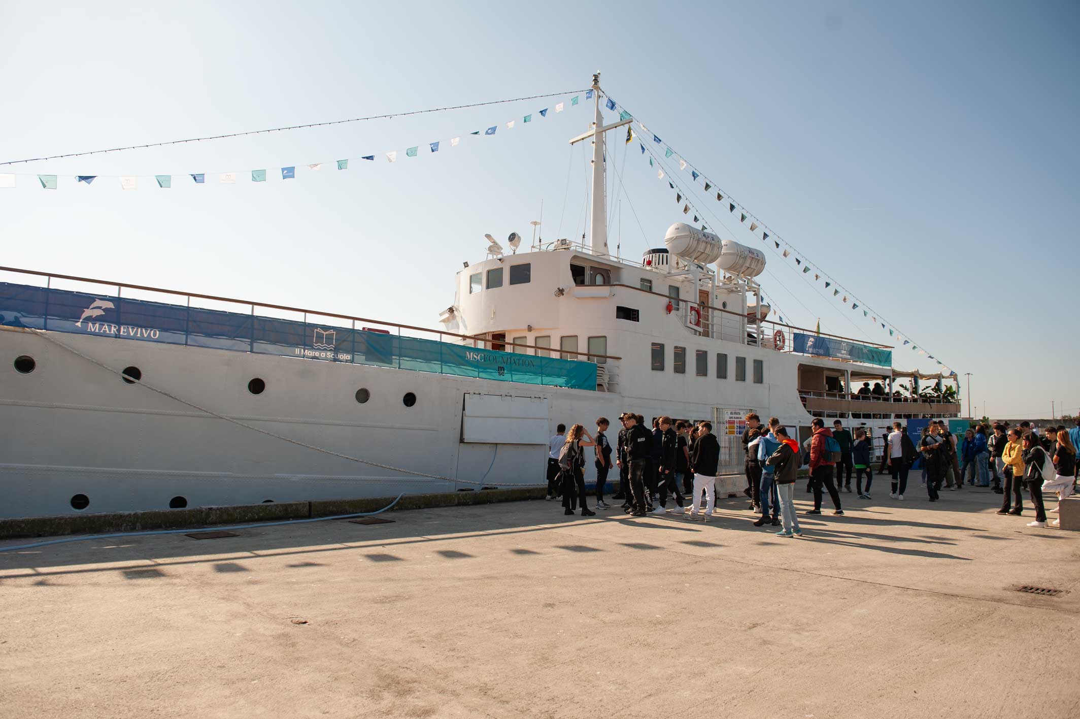 La Campagna “Il Mare a Scuola” è stata realizzata in collaborazione con MSC Foundation a bordo della storica Motonave Patrizia, gentilmente messa a disposizione da NLG – Navigazione Libera del Golfo.