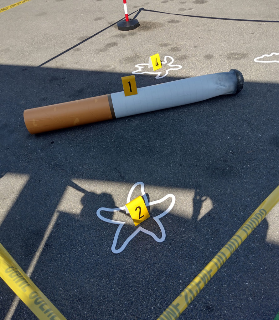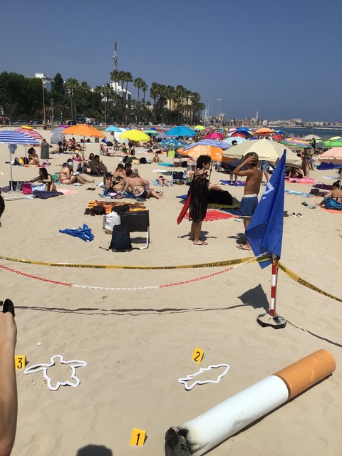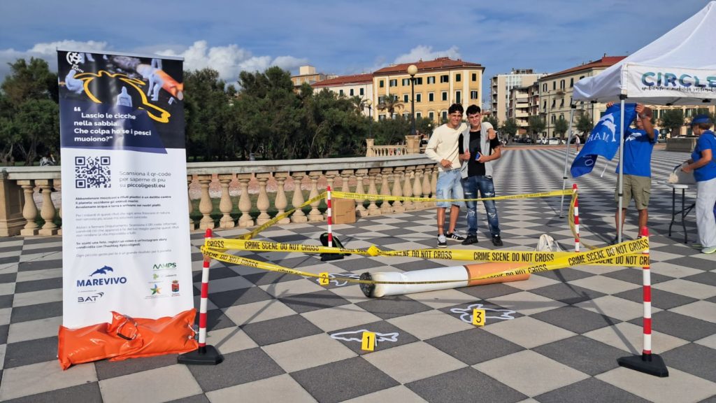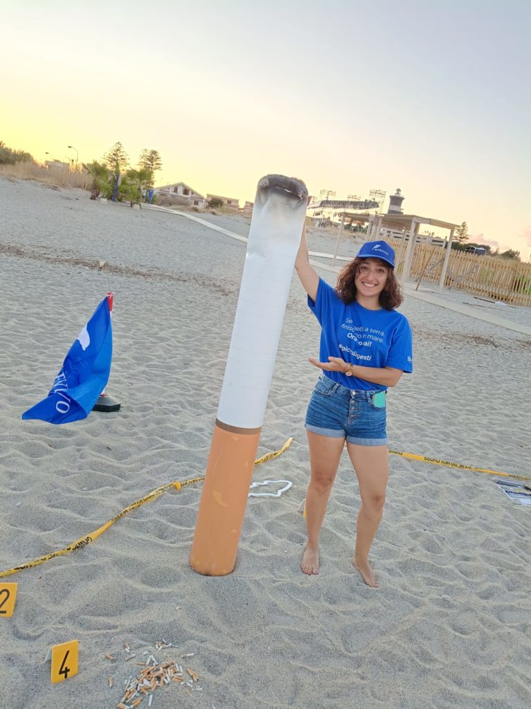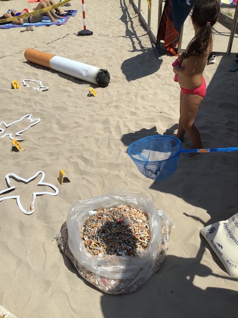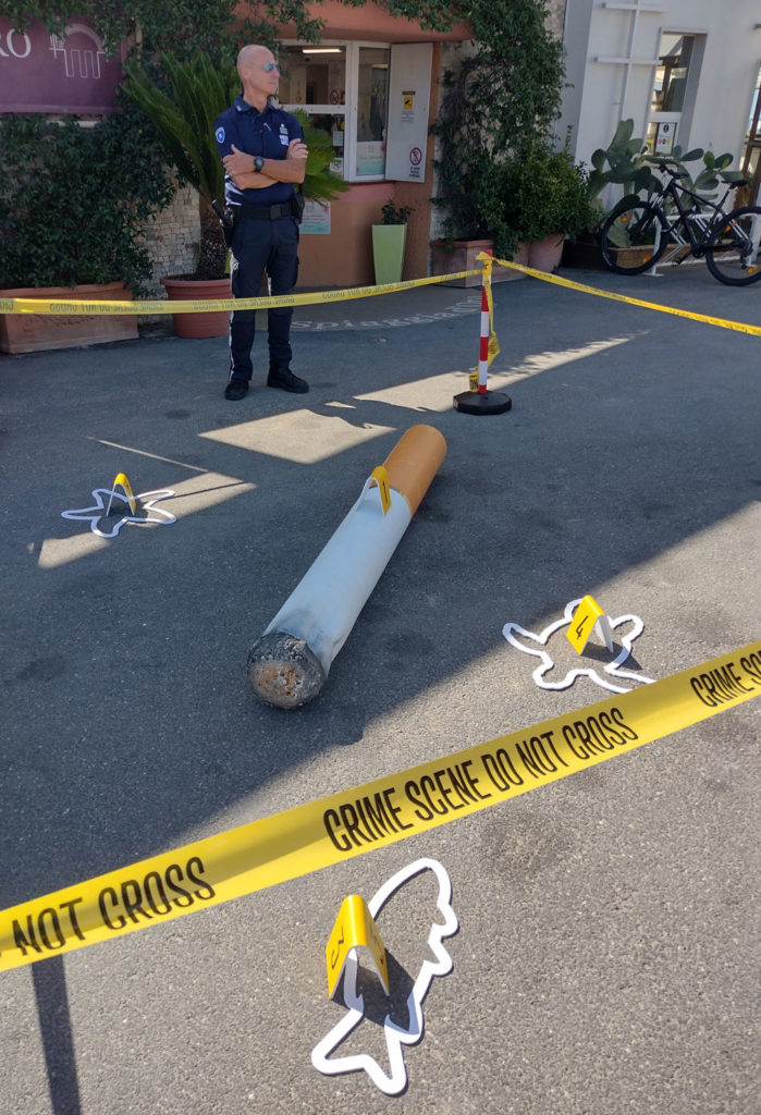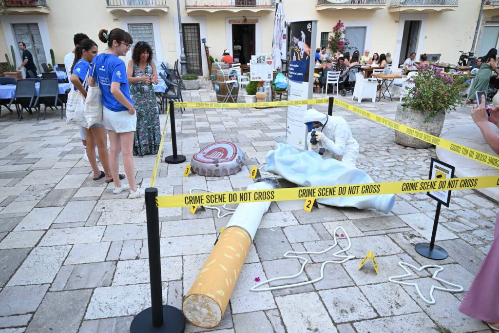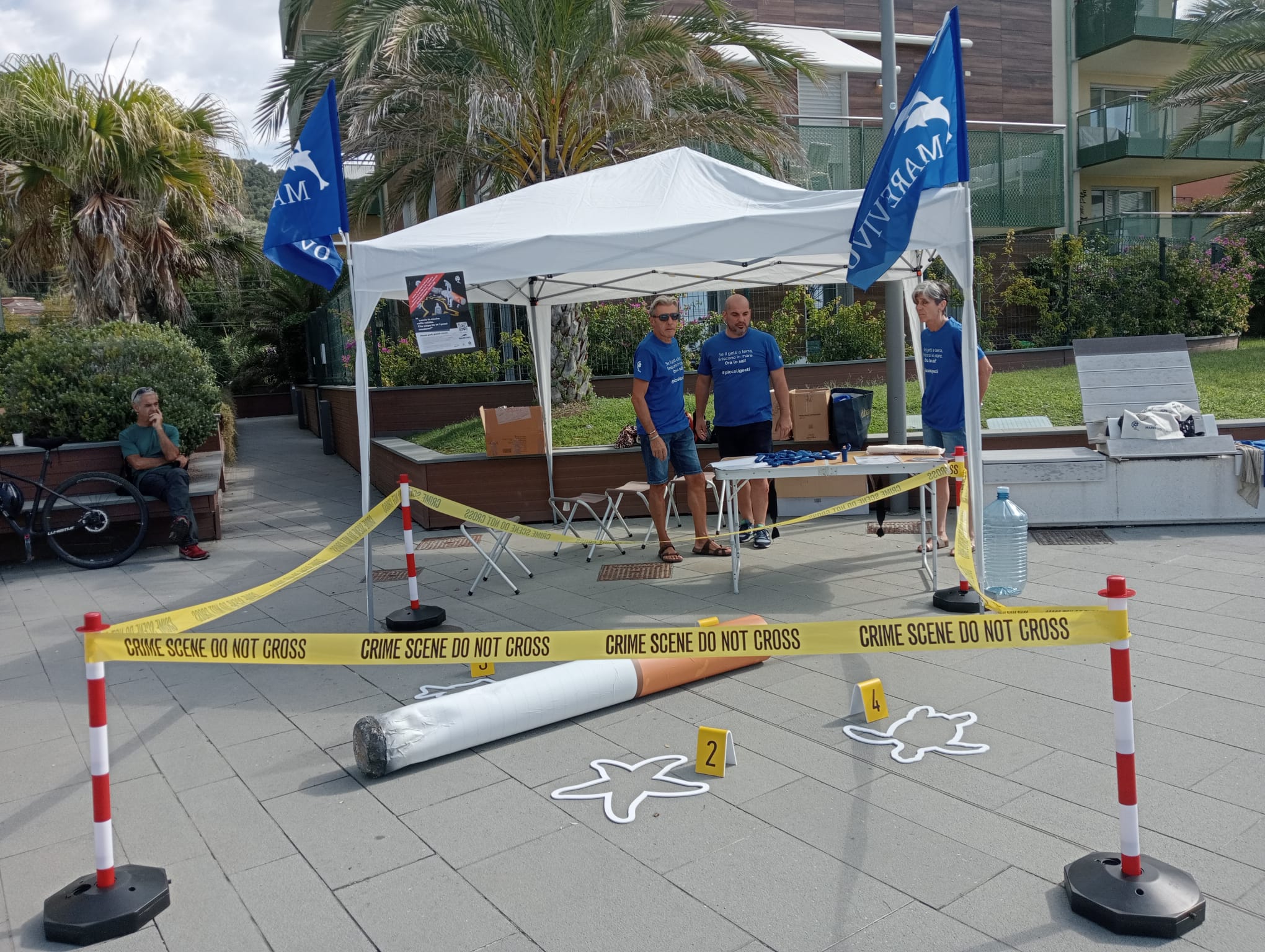 Per il 2022, nella "scena del crimine" accanto alle vittime - raffigurate da sagome di pesci, tartarughe e stelle marine – la simbolica arma del delitto non è stata rappresentata solo dal mozzicone gigante, ma anche dagli altri piccoli rifiuti, soprattutto di plastica, che si trovano nelle nostre città e che finiscono sulle spiagge e nel mare.