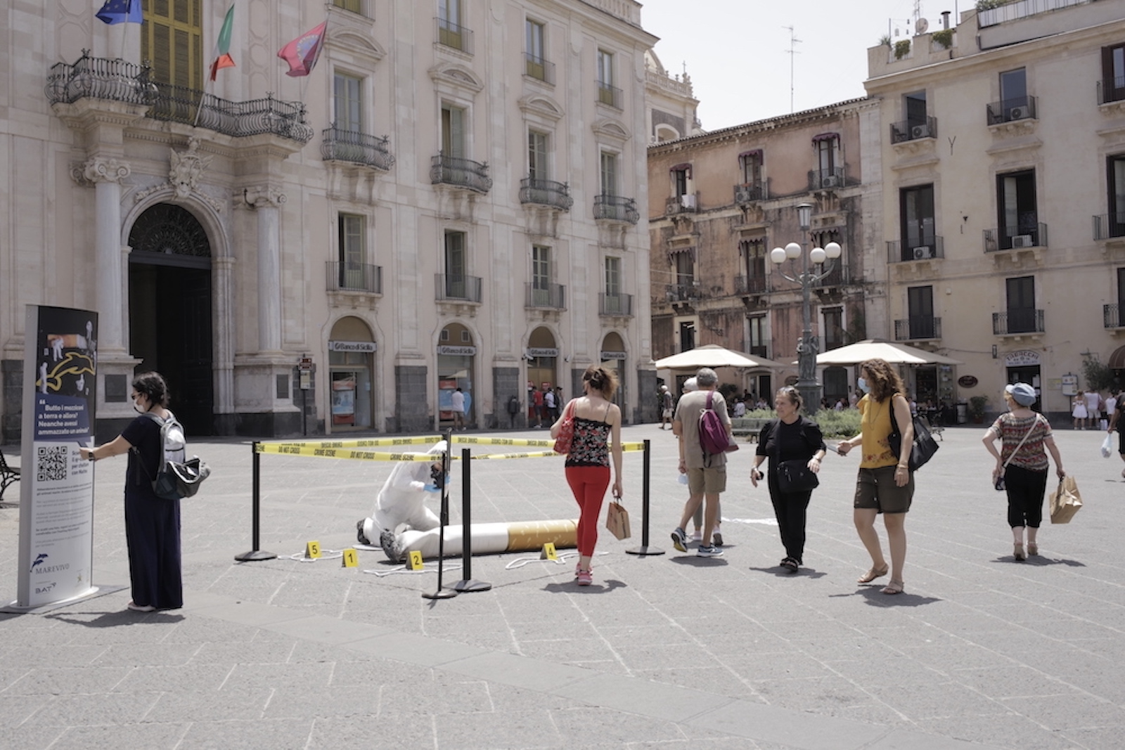 Installazione della scena del crimine nelle città di Trieste, Napoli e Firenze