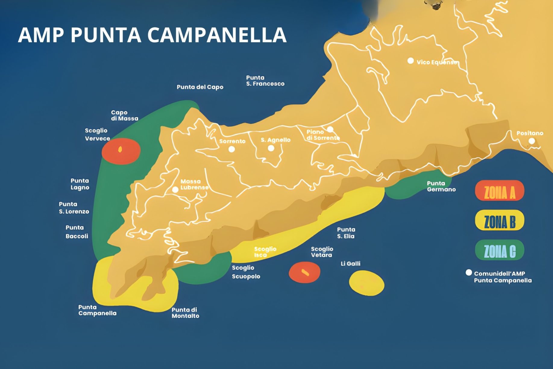 L’AMP è divisa in tre aree, ciascuna con regole specifiche per proteggere l’ecosistema e favorire un equilibrio tra uomo e natura.