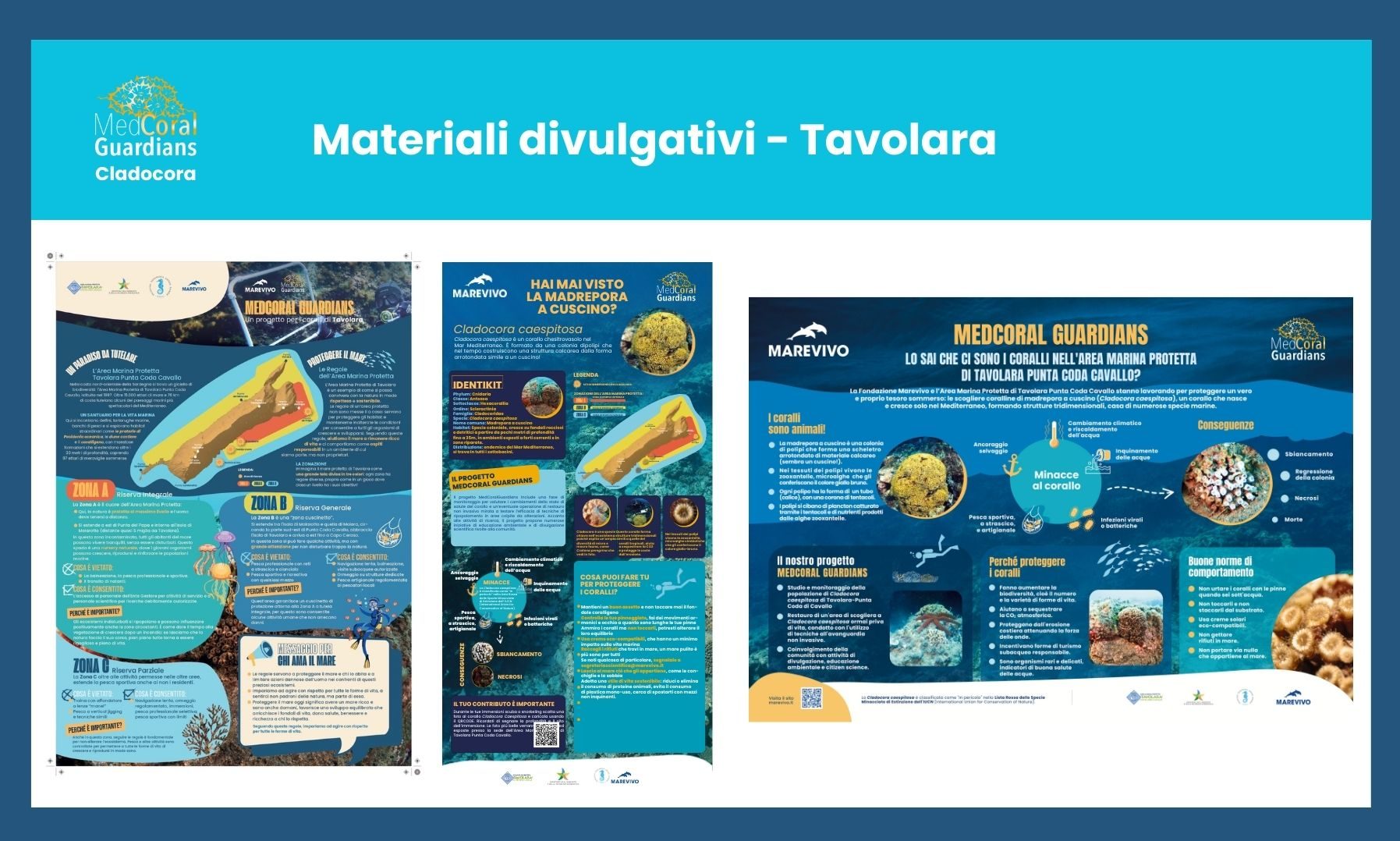 Sono, inoltre, stati realizzati pannelli informativi e materiali didattici rivolti a subacquei e centri diving, studenti e docenti, turisti, cittadini residenti, che illustrano l’importanza della Cladocora e spiegano le attività previste dal progetto.