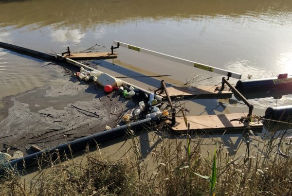 Quintali di rifiuti bloccati dalla barriera alla foce del fiume Platani