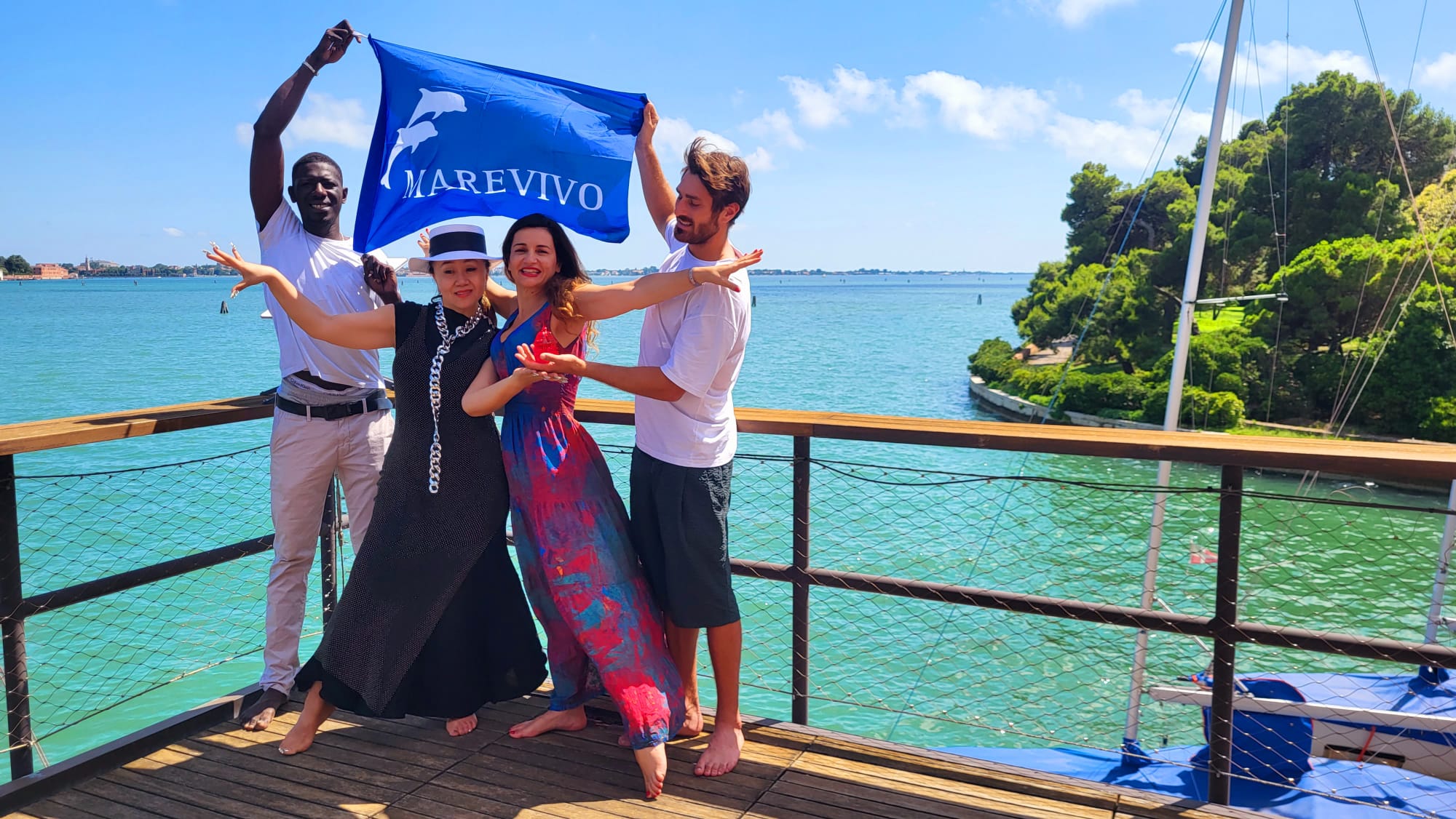 Nell’isola di San Giorgio presenti tra gli altri anche lo chef francese di origini senegalesi Saliou Fall e il tre volte campione del mondo di Canottaggio della Marina Militare, Antonio Vicino, che a maggio scorso, ha preso parte anche alla Vogalonga per sostenere la campagna internazionale “ONLY ONE. One Planet, One Ocean, One Health”. Accompagnata dalla musica, la Chialà ha dipinto una lunga tela di 20 metri con il suo corpo, coinvolgendo nella performance i velisti della Cooking Cup, gli attivisti e i volontari di Marevivo con l’intento di educare le giovani generazioni, attraverso l’arte, al rispetto del mare e del fragile ecosistema della laguna di Venezia.