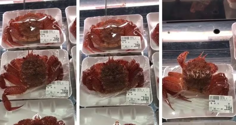Immaginate di recarvi al vostro supermercato di fiducia, state dando un’occhiata al banco del pesce e vi trovate di fronte alla solita maledetta vaschetta di plastica. Qualcosa però cattura particolarmente la vostra attenzione. Guardate più da vicino e, no, non soffrite di allucinazioni: i granchi imballati all’interno sono vivi.