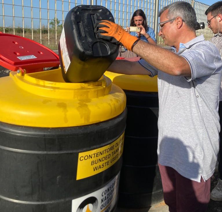 Il taglio del nastro al Porto di Roma con l’Assessore all’Ambiente di Roma Capitale Sabrina Alfonsi, per sottolineare l’importanza di una corretta raccolta e gestione degli oli lubrificanti usati