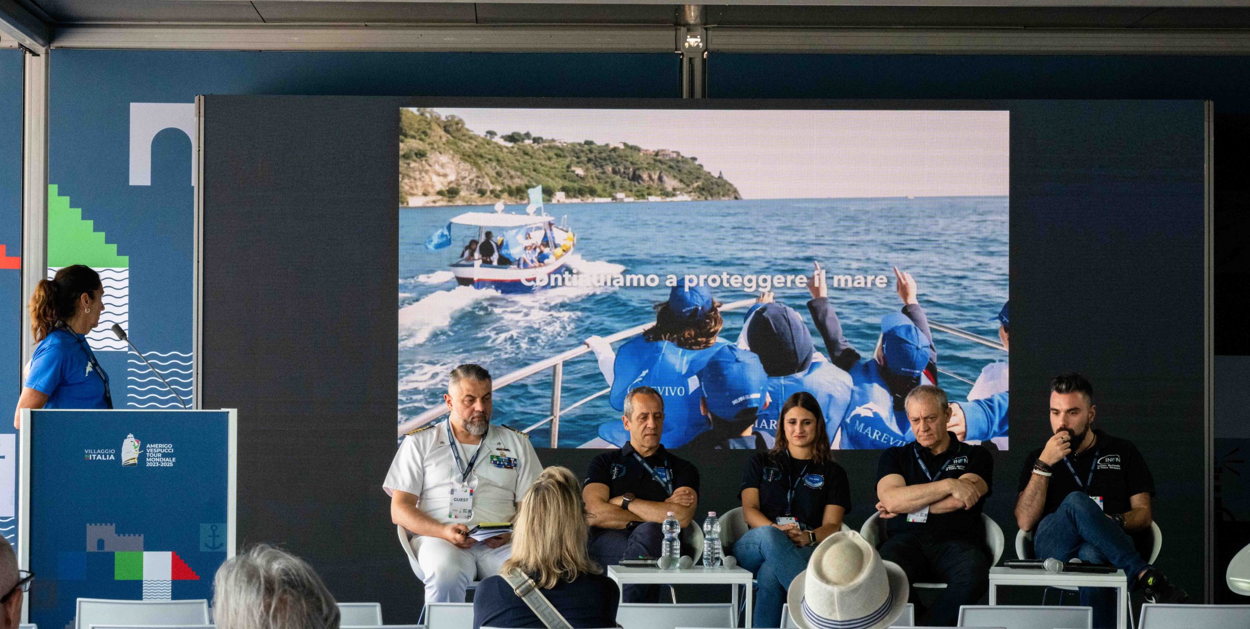 È approdata a Genova, tappa conclusiva del suo lungo viaggio, la campagna internazionale di Marevivo ʺOnly One: One Planet, One Ocean, One Healthʺ, ospitata a bordo dell’Amerigo Vespucci con una mostra divulgativa creata in collaborazione con la Marina Militare Italiana e Fondazione Dohrn, allo scopo di sensibilizzare i cittadini del mondo sull’urgenza di realizzare al più presto la transizione ecologica necessaria a combattere la crisi climatica che affligge il Pianeta. Oggi, nella Conference Hall all’interno del Villaggio Italia, allestito nel Porto Antico di Genova, sono intervenuti Fulvio Ferrara dell’ISS, Istituto Superiore di Sanità, Raffaella Valenti, Delegata Marevivo Liguria, Mario Nicola Mazziotta e Davide Serini dell’INFN, Istituto Nazionale di Fisica Nucleare, per fare il punto sui temi principali che hanno accompagnato a livello scientifico questo tour mondiale.