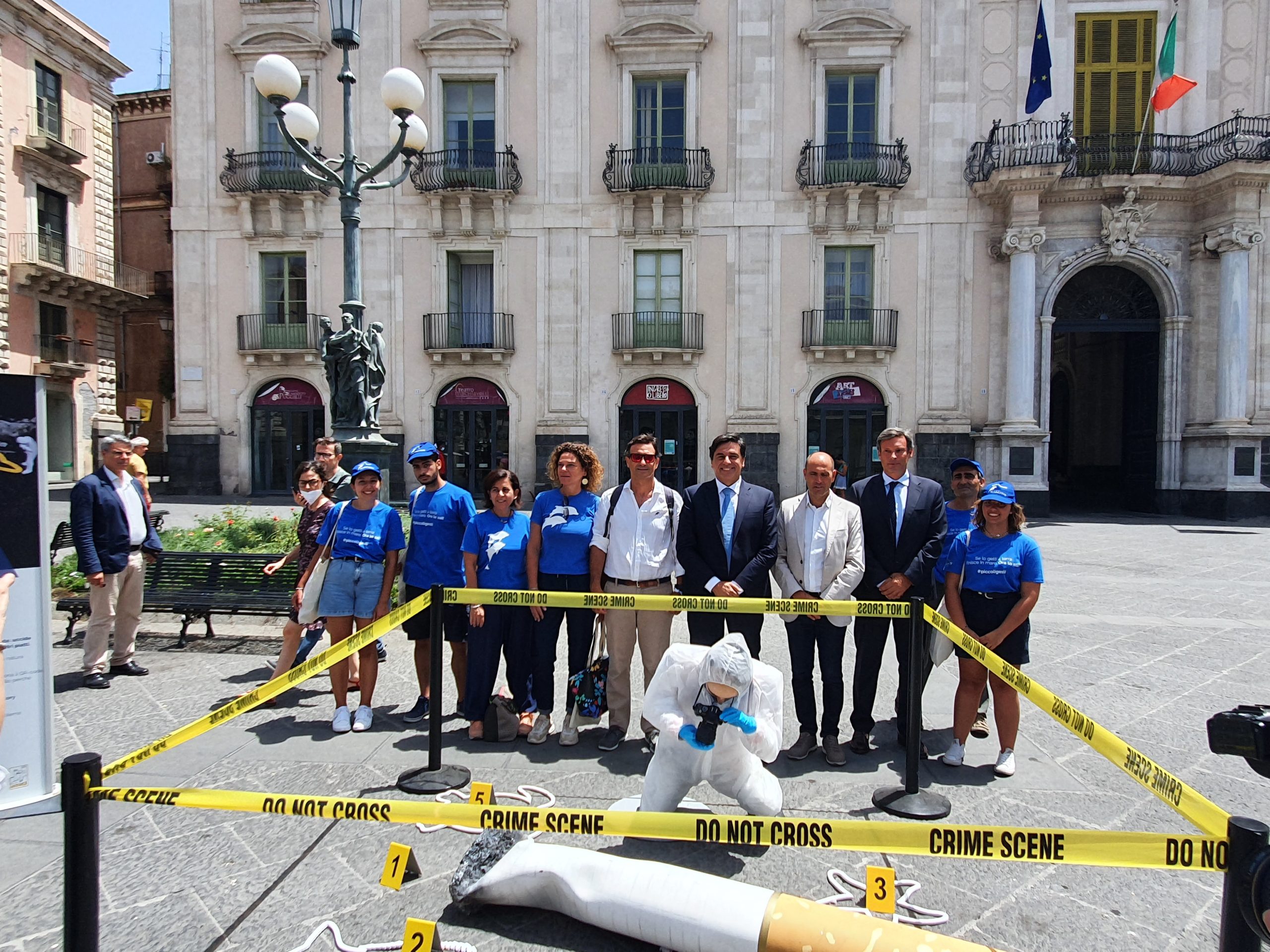 Proprio dalla volontà di accrescere sensibilità e consapevolezza verso il nostro Pianeta nasce “Piccoli gesti, grandi crimini”, che gioca sul concetto di crimine commesso da chi compie questo “piccolo” gesto, rappresentandolo con un’installazione dal grande impatto visivo: fino al 18 luglio sarà istallata in Piazza Università una vera e propria “scena del crimine”, in cui, accanto alle sagome delle vittime raffiguranti tartarughe, pesci e altri animali marini, è posta la riproduzione di un mozzicone gigante come simbolica “arma del delitto”.