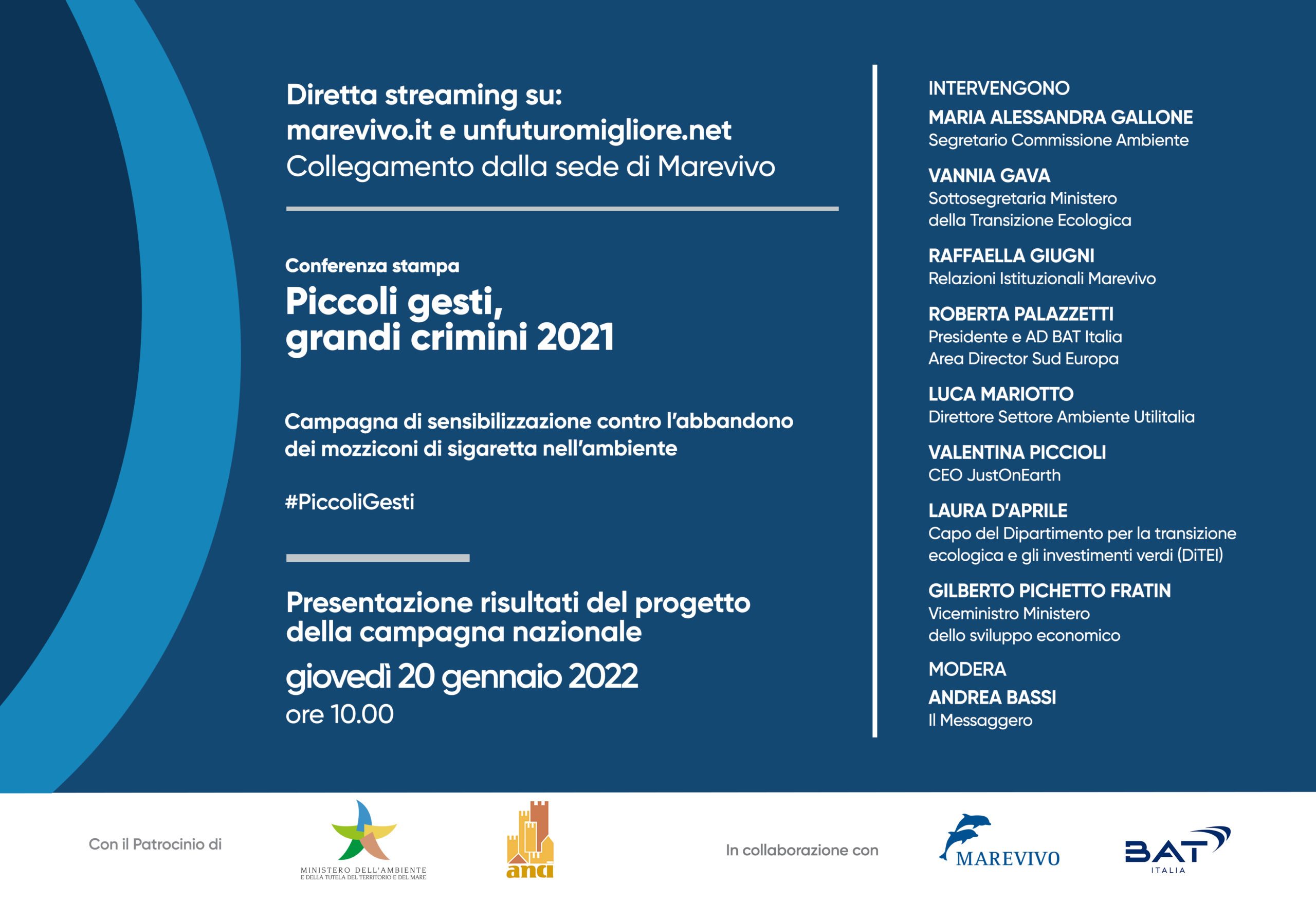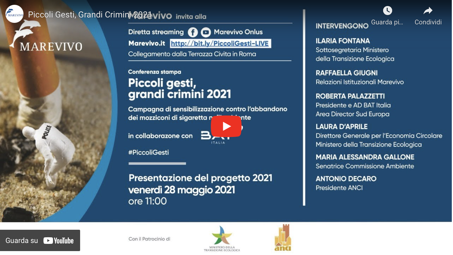 The national awareness campaign against the abandonment of cigarette butts in the environment promoted by Marevivo in collaboration with British American Tobacco Italy under the patronage of the Ministry of Ecological Transition and ANCI – National Association of Municipalities Italians wants to raise awareness of the risks related to littering, or the deliberate or involuntary abandonment of small waste in the environment