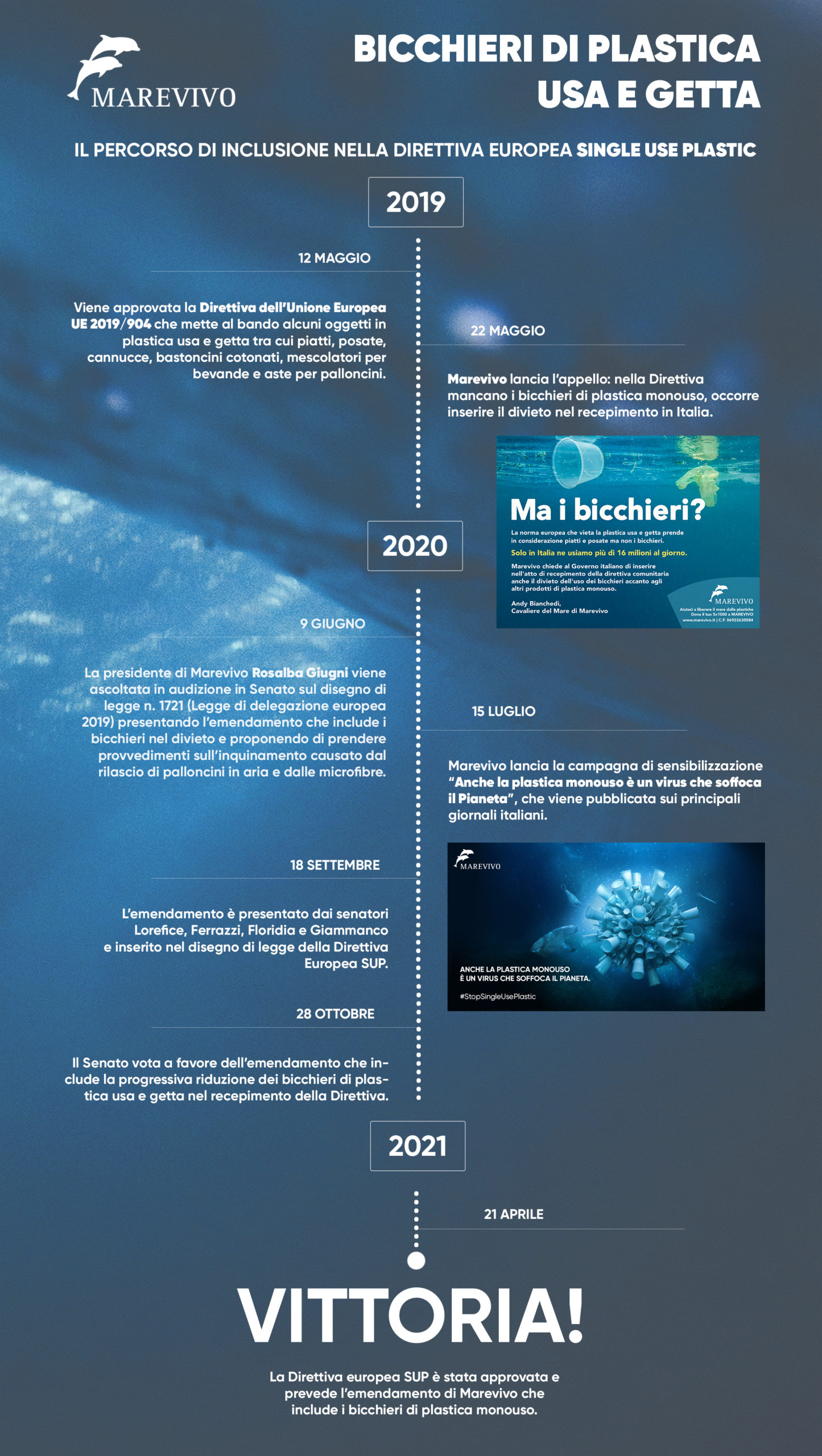 The Senate approved the European Union Directive 2019/904on single-use plastics (also called the SUP Directive, Single Use Plastic) , bans certain disposable plastic objects such as plates, cutlery and straws and it also included the amendment supported by Marevivo to provide the progressive reduction of plastic cups..