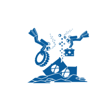 • fishing nets and gear, plastics, tires, batteries, large scale waste and much more that end up trapping and suffocating numerous marine organisms;