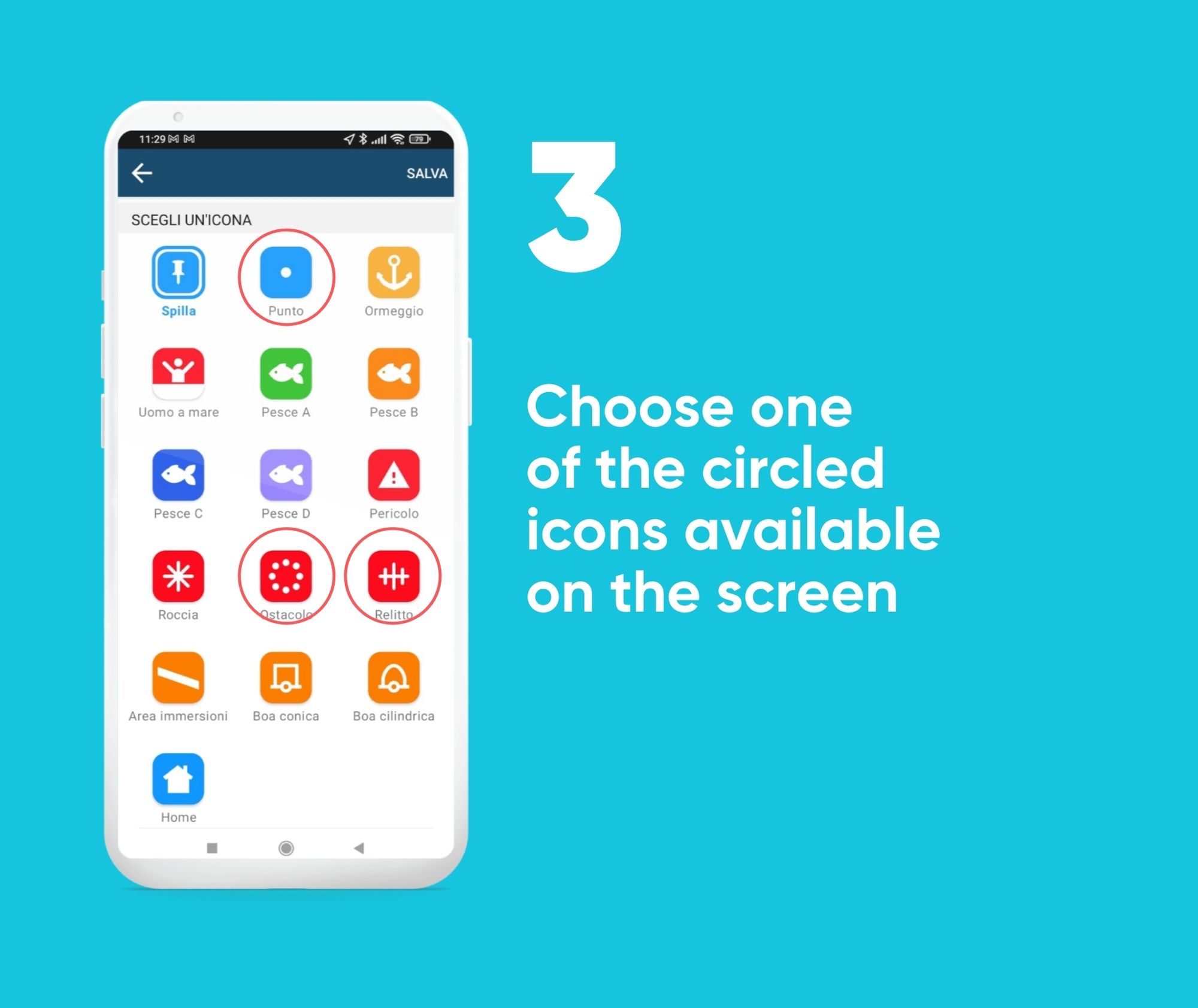 Through the “Connections” feature, it is possible to report to Marevivo the location and type of waste detected on the seabeds. The procedure is simple: download the app, create a marker with the coordinates of your position and share it with the Association’s account through the specific feature.