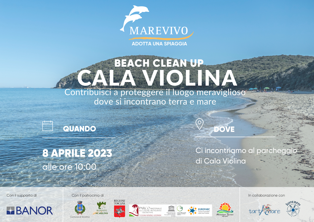 Vi aspettiamo sabato 8 aprile per un’attività di pulizia in Toscana, a Cala Violina (Scarlino), nell’ambito progetto Adotta Una Spiaggia di Marevivo.