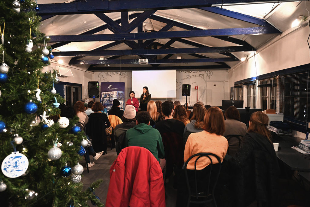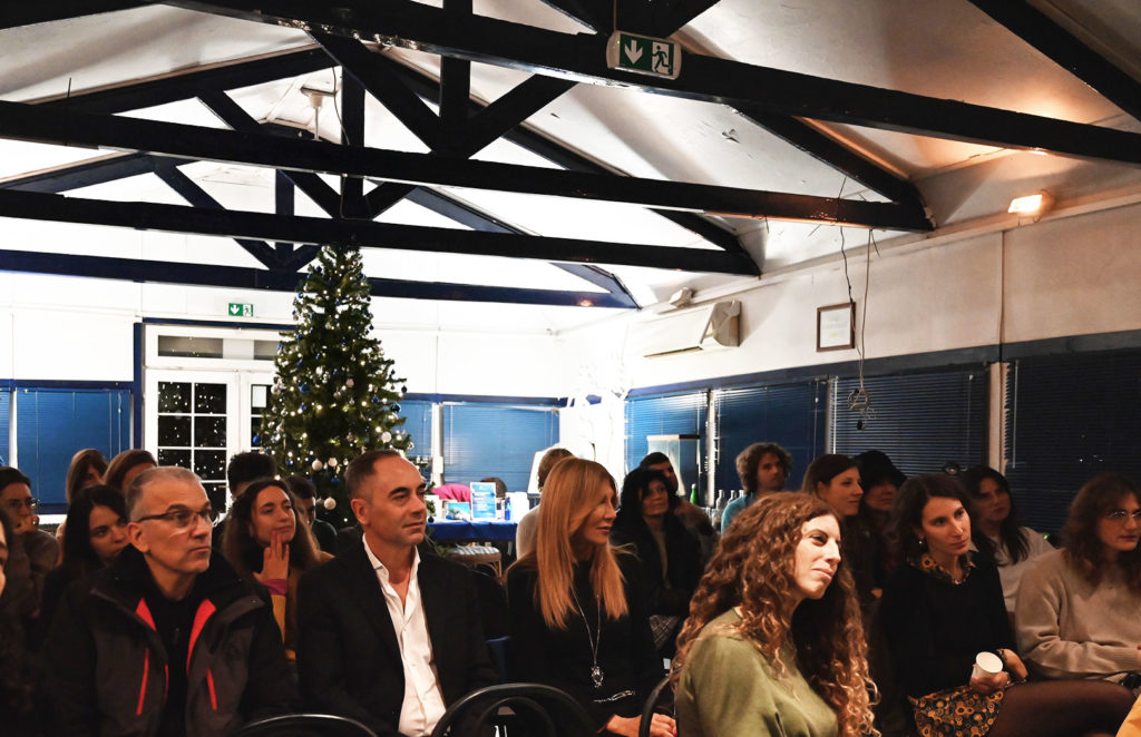 Per l’ultimo evento dell’anno della Marevivo Community, abbiamo trasformato la nostra sede in una vera e propria sala cinematografica per la proiezione di due cortometraggi dedicati alla bioacustica subacquea e ai copepodi, entrambi prodotti da Marevivo e realizzati da Federica Mazzagatti ed Evelina Idini. Durante la serata, le autrici dei filmati hanno avuto l’opportunità di raccontare il dietro le quinte di questi progetti, condividendo con il pubblico dettagli e curiosità sul processo creativo e scientifico che li ha accompagnati. Sul palco è intervenuto anche l’ospite d’onore, Tommaso Daccò, tecnico del suono e musicista, che ha approfondito la parte tecnica legata alla realizzazione sonora dei documentari, rivelando l’importanza della bioacustica nel contesto marino. Come di consueto, la serata si è conclusa con un momento di domande e risposte (Q&A), durante il quale i partecipanti hanno potuto confrontarsi con le autrici e approfondire le tematiche trattate. Successivamente, abbiamo condiviso un piacevole aperitivo, scambiando opinioni in un’atmosfera informale e con un pensiero dolce per il mare. Ogni volontario ha avuto l’opportunità di scrivere un messaggio di speranza su una speciale cartolina, che è stata appesa al nostro albero di Natale, simbolo del nostro impegno e della nostra passione per la tutela del mare.