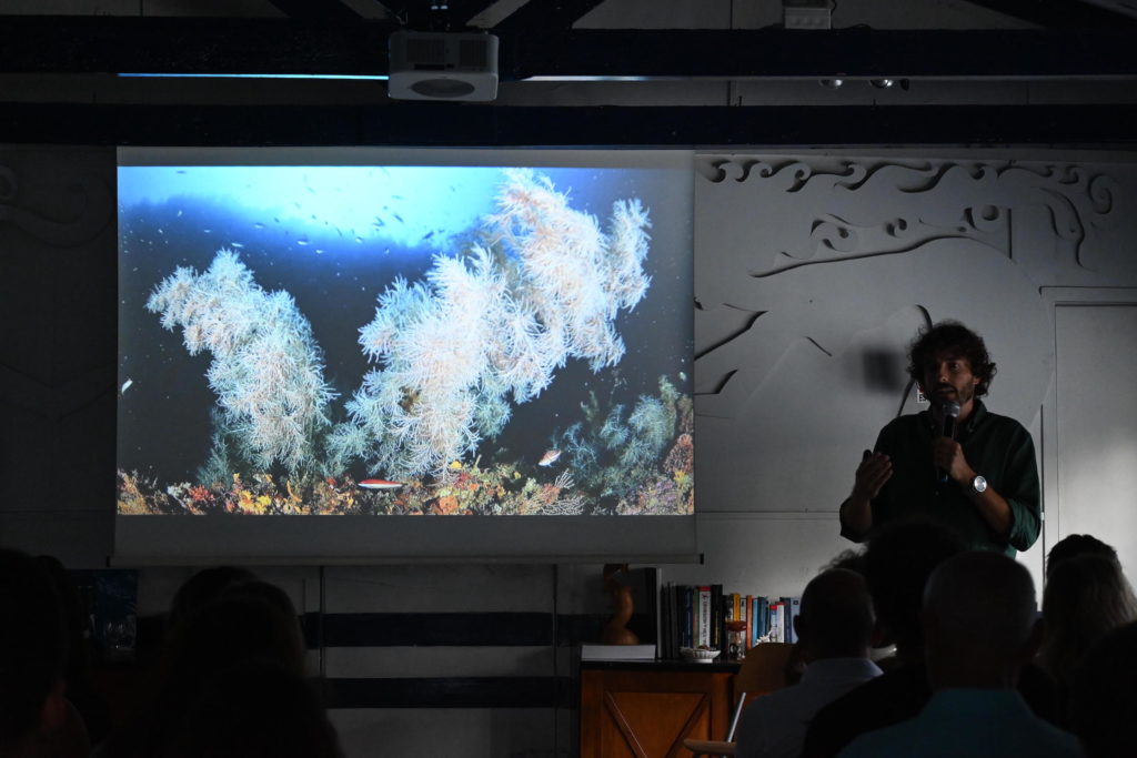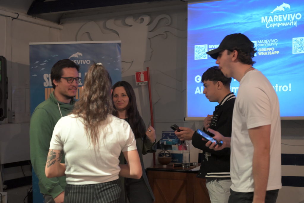 L’evento è stato interamente dedicato alla scoperta dei coralli del nostro mare, con la partecipazione del biologo marino e National Geographic Explorer Giovanni Chimienti, dell’Università degli Studi Aldo Moro di Bari. Chimienti, attraverso la proiezione del suo documentario “Il tesoro nascosto delle Isole Tremiti”, ci ha guidato alla scoperta del corallo nero, una specie straordinaria che popola le profondità marine a partire dai 50 metri. Al termine della visione del documentario, è intervenuto Massimiliano Falleri, responsabile della Divisione Subacquea di Marevivo, il quale ha approfondito il tema della messa a dimora di un esemplare di corallo nero, un’iniziativa realizzata dai subacquei tecnici della divisione subacquea di Marevivo sul relitto Haven. L’incontro si è concluso con un interessante momento di Q&A, durante il quale i communiters hanno avuto l’opportunità di porre domande agli esperti presenti. L’appuntamento è terminato con un aperitivo conviviale, simbolo di un incontro ricco di contenuti e di scambio.
