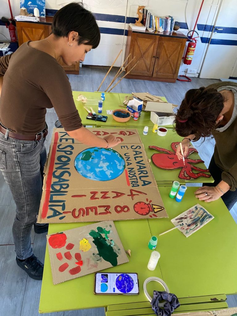 La nostra sede si è trasformata in un laboratorio creativo, dove, insieme ai communiters, abbiamo realizzato cartelloni e maschere raffiguranti specie marine, dipinto slogan di sensibilizzazione sui temi del mare e creato maschere ispirate al volto del delfino. Tali creazioni sono state utilizzate per rappresentare il mondo sommerso durante la manifestazione “Climate Pride” del 16 novembre, la prima street parade gioiosa e ribelle svoltasi a Roma. Questo evento è nato dall’impegno di oltre 70 associazioni ambientaliste e umanitarie in occasione dell’inizio della COP29. Alla preparazione dei materiali ha partecipato attivamente anche l’organizzatore stesso della manifestazione. Il corteo ha visto la partecipazione di oltre 5.000 persone, e Marevivo, l’unica realtà a rappresentare il mondo marino, ha svolto un ruolo di primo piano, intervenendo in modo significativo sulla tematica della giustizia climatica.