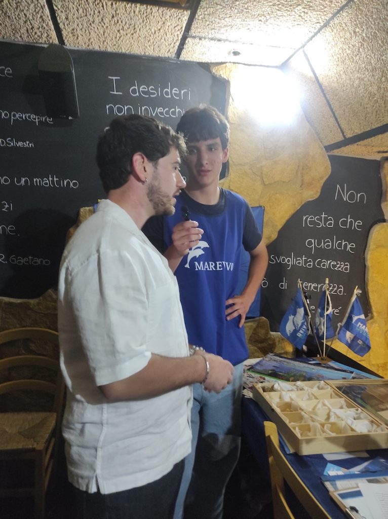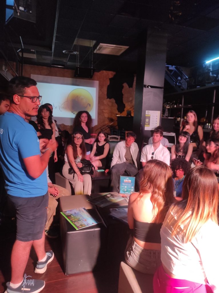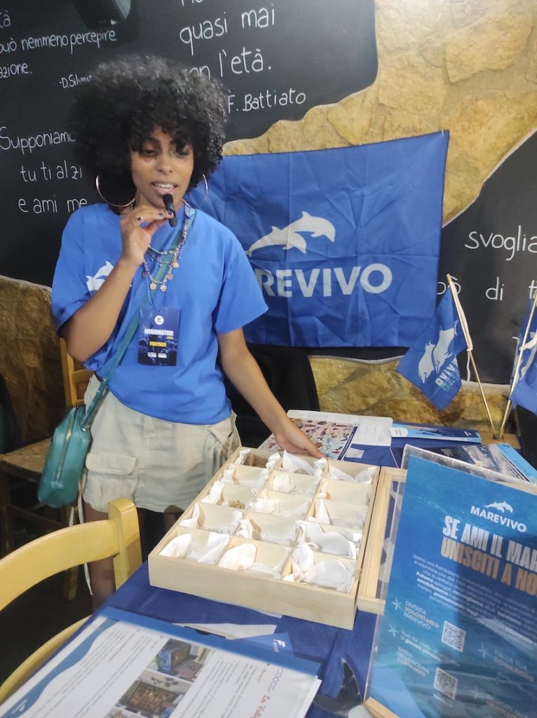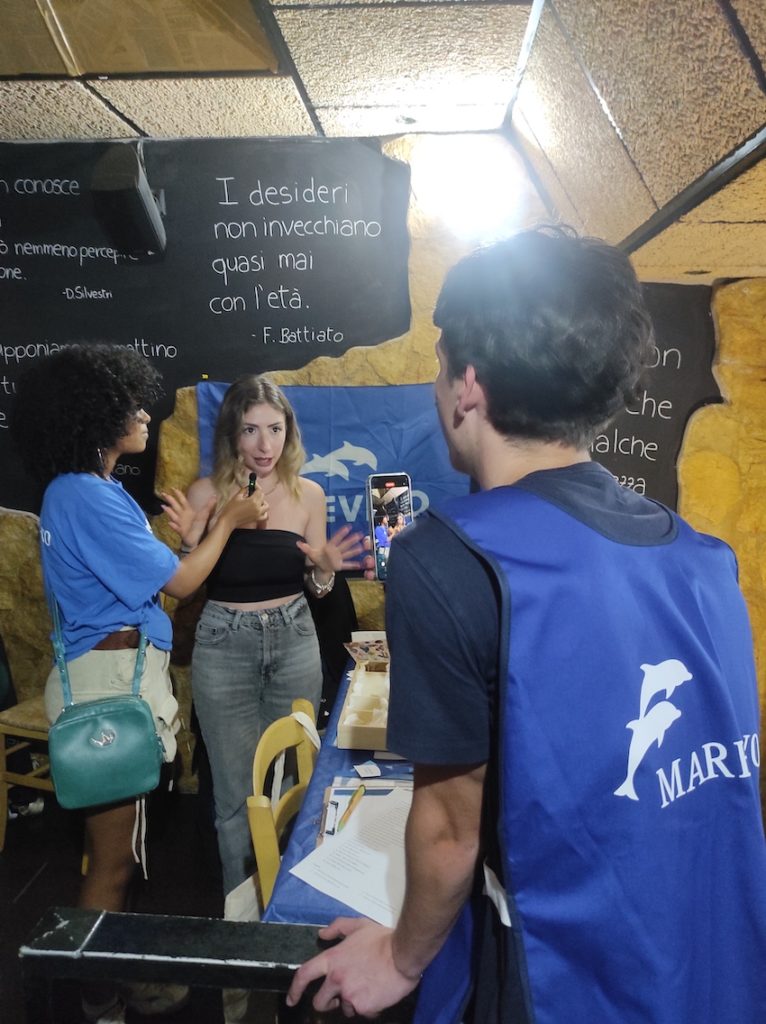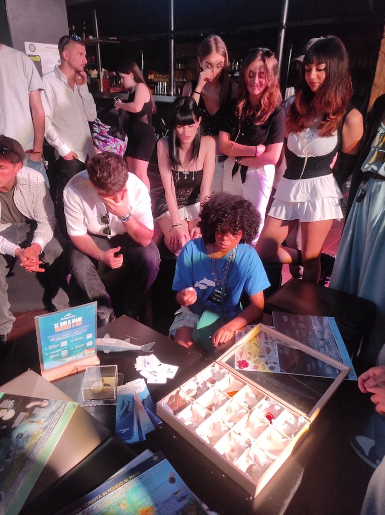 IVISIONATICI music fest fa nuovamente tappa a Roma, allo storico locale “L’Asino che vola”. Una nuova occasione per parlare di tutela marina di fronte a un pubblico esclusivo di circa 40 artisti prima dell’inizio del contest canoro. I nostri attivisti e operatori, durante la serata, hanno allestito uno stand di sensibilizzazione usando lo strumento Scatola del Mare dentro la quale si trovano resti di organismi acquatici e, in seguito, sono saliti sul palco per parlare di transizione culturale ed ecologica di fronte a un pubblico interessato di 150 persone! Il mare e la musica non sono mai stati così vicini.