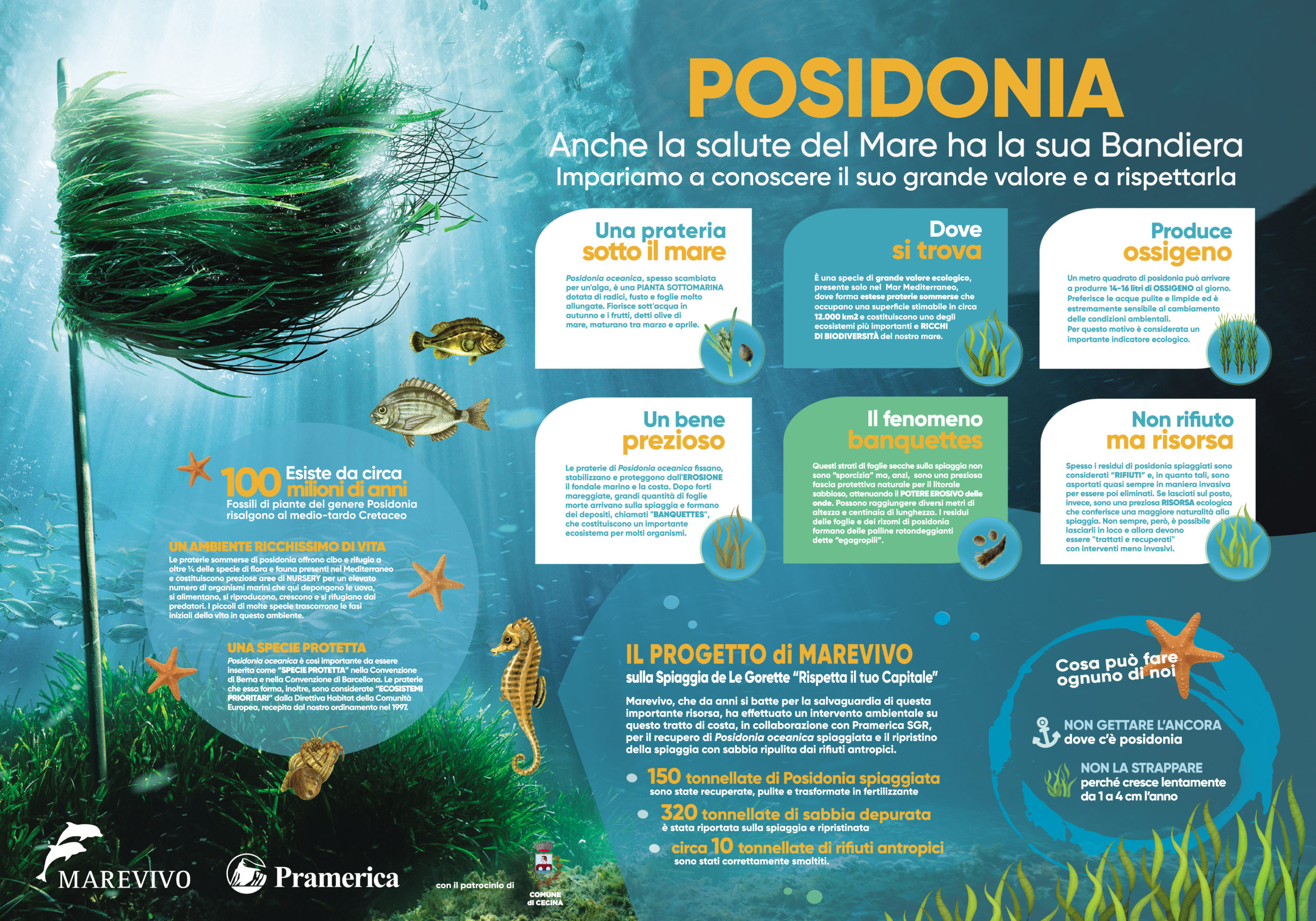 Marevivo e Pramerica SGR si uniscono nel progetto “Rispetta il tuo capitale”: un’iniziativa con valenza ambientale e scientifica, che ha l’obiettivo di valorizzare il ruolo della Posidonia oceanica per la salvaguardia della biodiversità del Mediterraneo e di misurare il benessere percepito e il valore aggiunto di tale iniziativa non solo per gli individui, ma per tutta l’economia del territorio.
