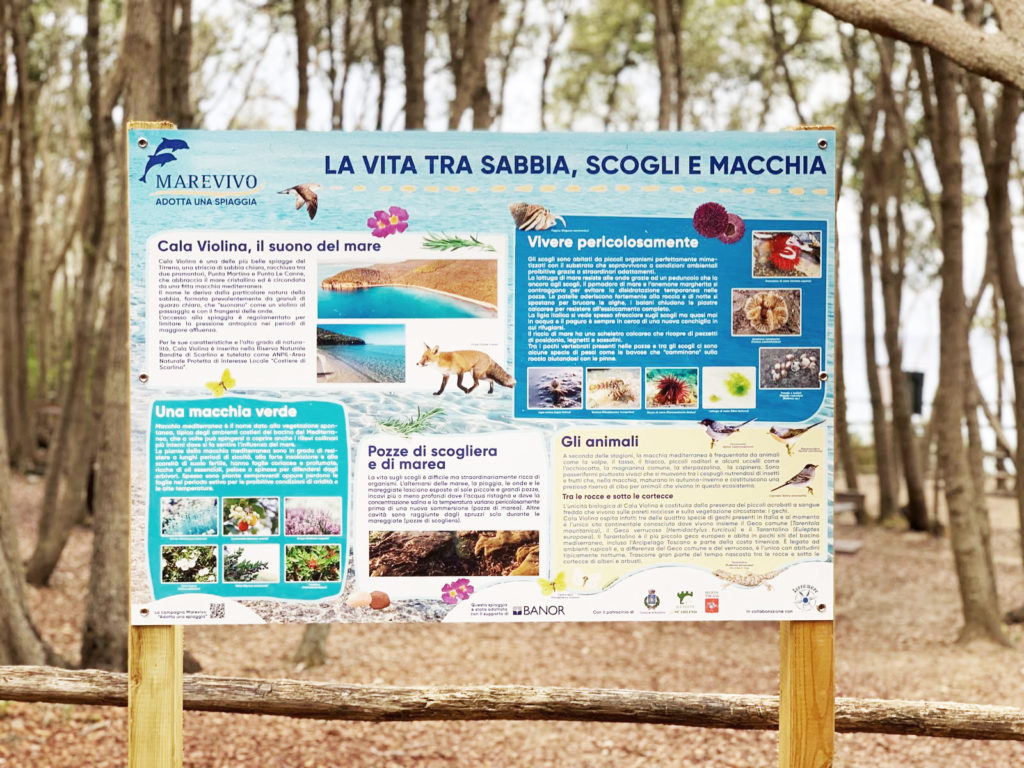 Cala Violina è inserita nella Riserva Naturale Bandite di Scarlino è unica nel suo valore per via dei granelli di quarzo che la compongono che, se calpestati, producono il suono delle note di un violino. Questa spiaggia preziosa va protetta dai rifiuti abbandonati e dalle azioni dell’uomo.