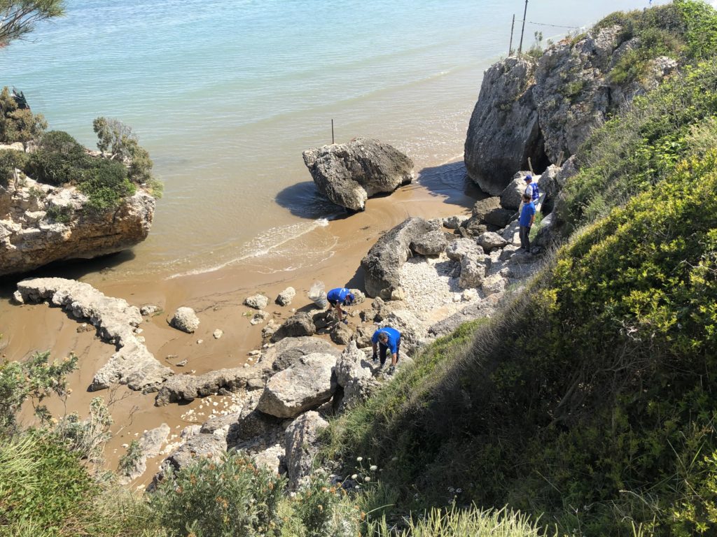 Questa spiaggia, un piccolo gioiello a ridosso di un grosso masso roccioso, è sabbia fine mista a ghiaia. Trovandosi in prossimità di stabilimenti per la mitilicoltura, è vittima della dispersione delle retine (calzette) utilizzate negli allevamenti stessi che si riversano sulle coste, rappresentando una grave minaccia per gli animali.